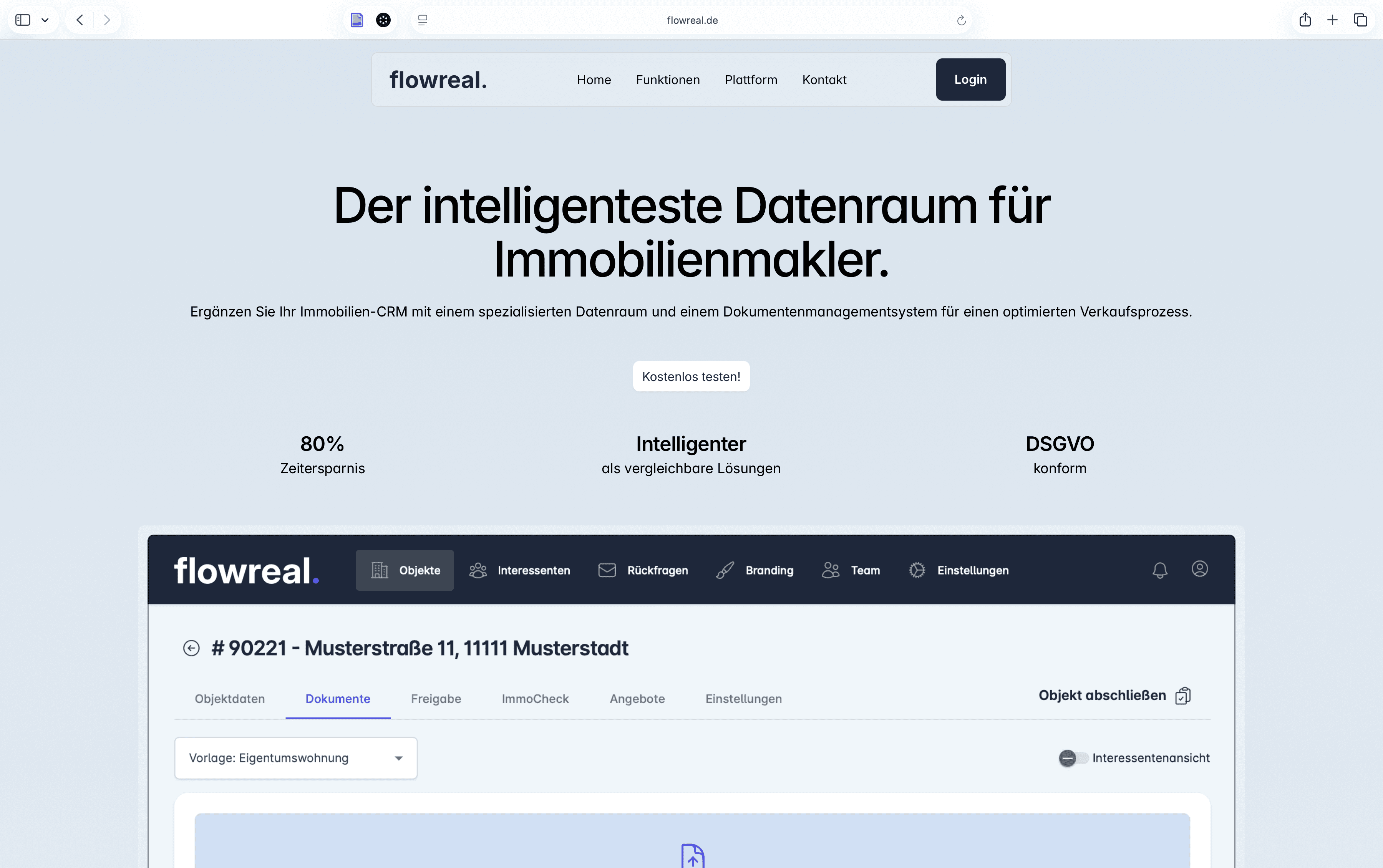 Flowreal is a smart data room for real estate agents, combining AI-powered document management with a structured sales process. Henning, co-founder of Flowreal, asked me to help make the website communicate the product more effectively. My role was to provide strategic input, visual sketches, and design guidance that helped him move forward independently.